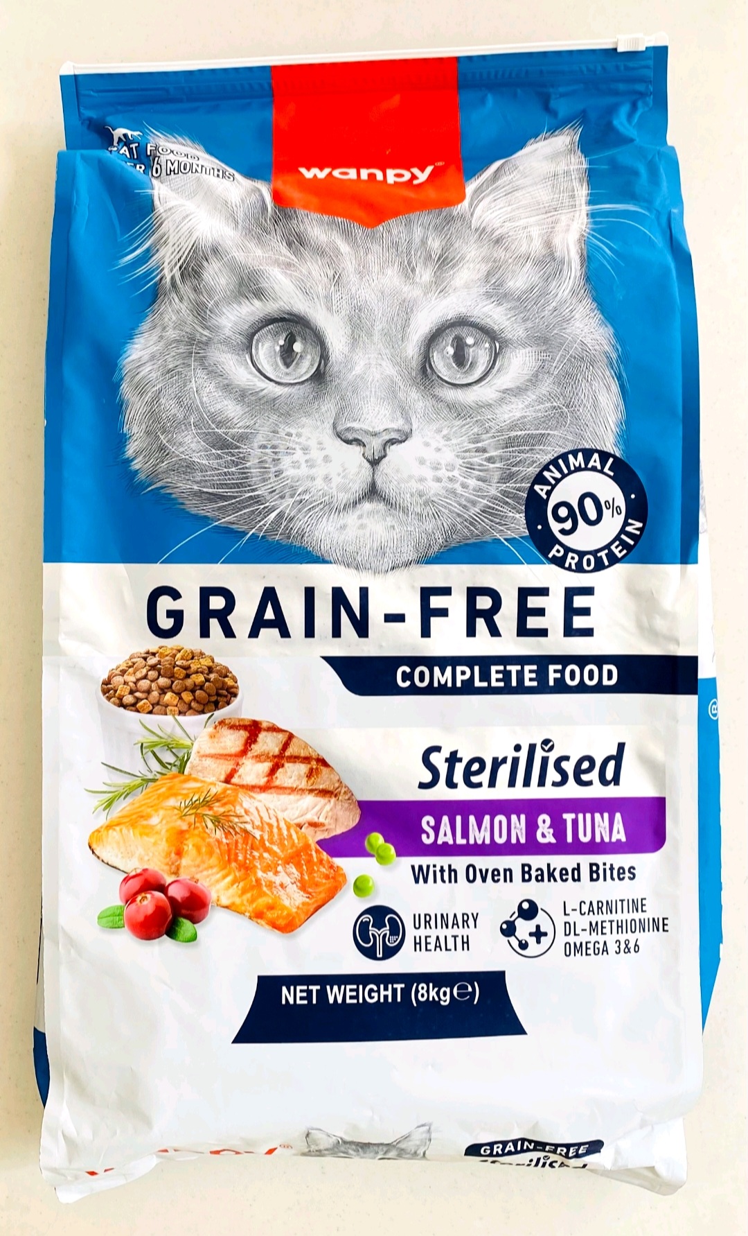 غذا خشک گربه عقیم ونپی طعم سالمون و تن 8 کیلوگرمی