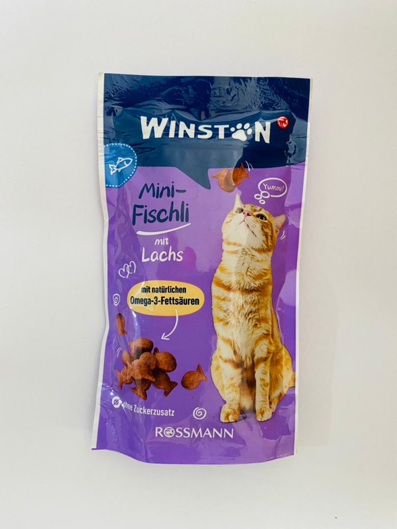 تشویقی بالشتی گربه وینستون 50 گرمی با طمع گوشت ماهی دارای امگا 3